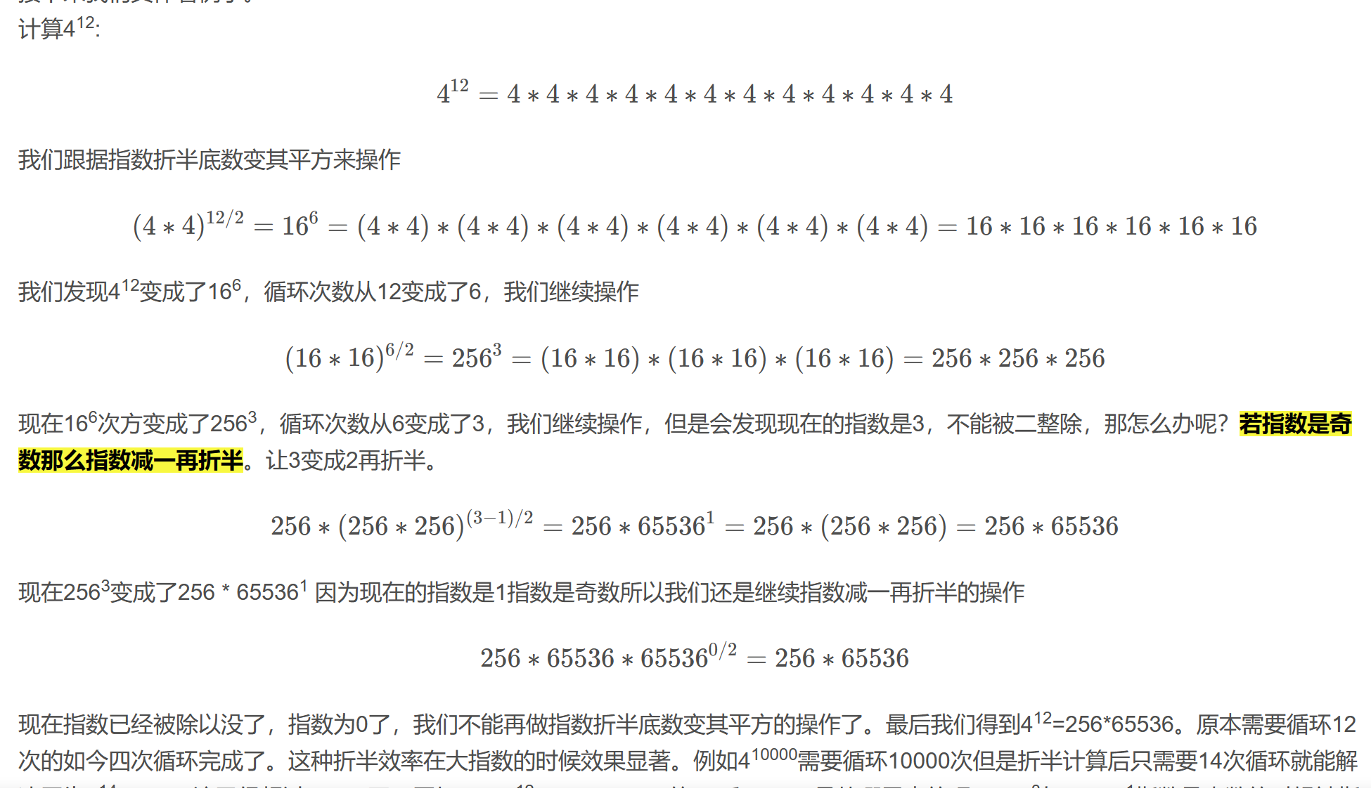 #指数大于0进行指数折半,底数变其平方的操作